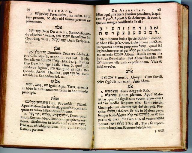 The expansion of the polyglot Bible, culminating in England in 1657 with the publication of Bryan Walton’s nine-language edition, spawns the development of multi-lingual dictionaries, concentrating less on the genealogy of words, but more on their cross-cultural usage. Finally, aids such as dictionaries of abbreviations and guides to Hebrew letter writing are developed as aids for the Christian scholar working in the field of rabbinic literature.